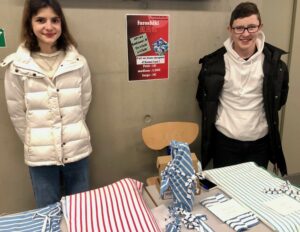 Dans une démarche éco-responsable, s’inspirant de l’art japonais du Furoshiki, les éco-délégués ont tenu un stand de vente de tissus vendredi 19 décembre. Contactée il y a quelques semaines maintenant, l’entreprise Armor Lux, sensible à la démarche des lycéens, a fait don de chutes de tissus. Les éco-délégués les ont ensuite redimensionnées afin de proposer des emballages de différentes tailles, et offrant une seconde vie à ces tissus de bonne qualité.